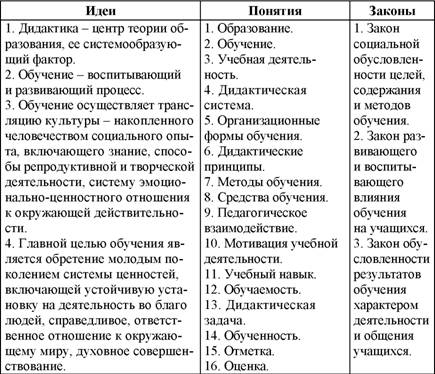 При построении логической структуры дидактики использованы совокупность дидактических идей, детально проанализированных И.Я. Лернером,[40] дидактические законы и понятия, систематизированные В.И. Загвязинским[41] и Е.С. Рапацевичем.[42]