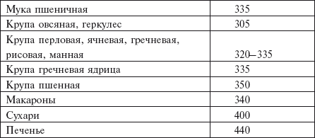 Калорийность продуктов приведена в ккал из расчета на 100 г продукта:
