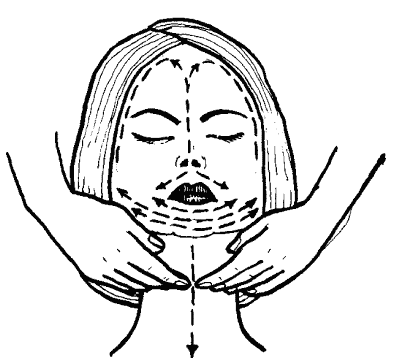 Это были подготовительные приемы. Мышцы лица расслаблены, теперь можно приступить к массажу отдельных частей лица.