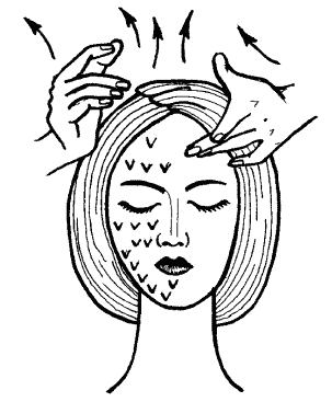 Выполняй поглаживания непрерывно, меняя при этом руки. Сначала выполни этот прием на средней части лба, а затем на боковых частях.