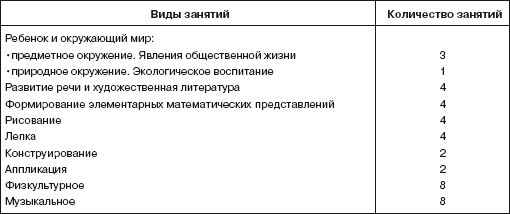 Примерный перечень основных занятий на месяц (при работе по пятидневной неделе)