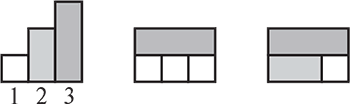 Материал. Для воспитателя: 3 белых квадрата 10x10 см; розовая полоска 20x10 см, голубая полоска 30x10 см; цифры. Для детей: цветные счетные палочки – 4 белые, 1 розовая, 1 голубая; цифры от 1 до 3.