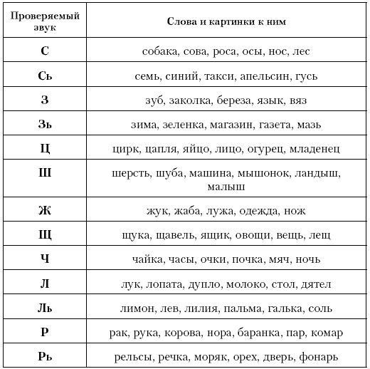 И далее на все те звуки, которые вы хотели бы проверить. Результаты такого домашнего обследования обязательно запишите.