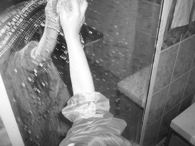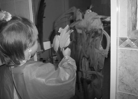 Рис. 1. Даша рисует на зеркале зеленого человека, ассоциирующегося с монстром и ночными страхами