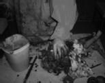 После этого она смыла с куклы краску, используя большое количество мыльной воды. Снова стала рисовать на кукле, сказав, что гениталии будут красными. Намочила тряпку в грязной воде, где ополаскивала кисточки, стала смывать ей краску с куклы. Фигура куклы при этом напоминала окровавленное тело.