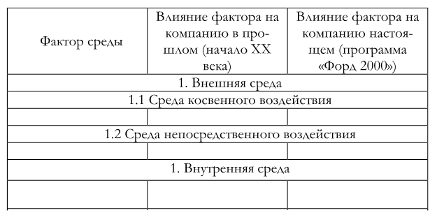 2. Как бы вы охарактеризовали взаимодействие компании «Форд» с внешним окружением? Заполните таблицу: