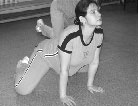 в) стоя на четвереньках, покачивать таз вперед-назад (с усилием «удерживая» ленту).