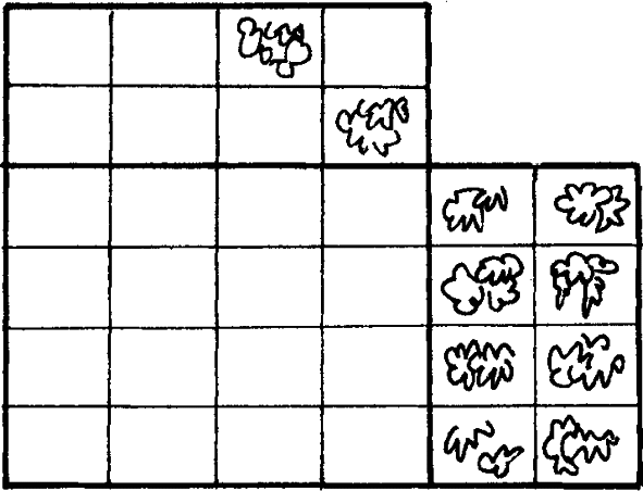 Разработанный автором пособия метод «наглядного ориентира» (см. рис.) является своеобразным аналогом «мерки для подражания» (А. В. Запорожец). Приём помогает педагогу успешнее организовать выполнение детьми заданий по декоративно-пространственному дизайну. Например, взрослый знакомит детей с характером будущего оформления домика куклы или помещения, выполняет изобразительную основу-«каркас» убранства (плоскостной, объёмный – «мерку для подражания» (наглядный ориентир), оставляя недооформленные («забытые») места, предоставляя сделать это детям. Дети, подражая образному строю и стилистике (рисунок, цвет, композиция) незаконченного убранства, заполняют так называемые «белые пятна» оформления в определённой композиции, заданной взрослым: дорисовывают элементы убранства, доклеивают силуэты, достраивают постройку. Педагог помогает им закончить композицию в единой стилистике с «наглядным ориентиром». Эффективность этого метода доказана педагогической практикой. Процесс детского творчества успешнее протекает в канве, задаваемой педагогом, но это не значит, что дети лишены возможности проявить свою индивидуальность, своё творчество.