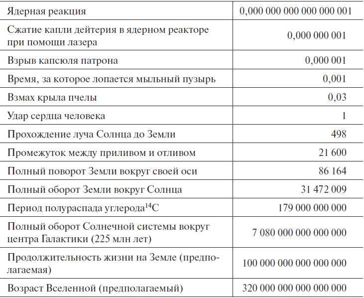 Таблица 1.1. Продолжительность некоторых физических процессов (сек)