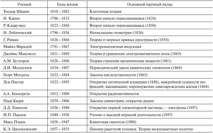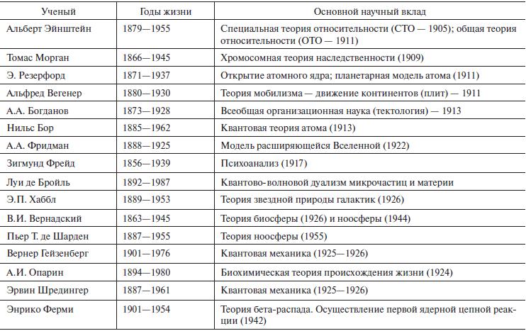 Таблица 3.1. Наиболее значимые ученые естествознания: с VI в. до н. э по XX в.