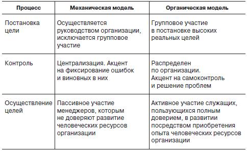 Различия в качественных характеристиках данной и предшествующей моделей объясняются тем, что первая из них ставит во главу угла критерии максимальной эффективности и производительности, а вторая – критерии максимальной удовлетворенности, гибкости и развития. Эти различия особенно ярко проявляются в процессах, которые влияют на поведение человека в организации.