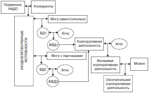 Рис. 1.12. Алгоритм разработки от первичного понимания потребности рынка через последовательность уточнений до формирования видов корпоративной деятельности: ВД – вид деятельности; ЖВД – желаемый вид деятельности