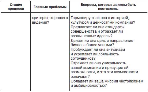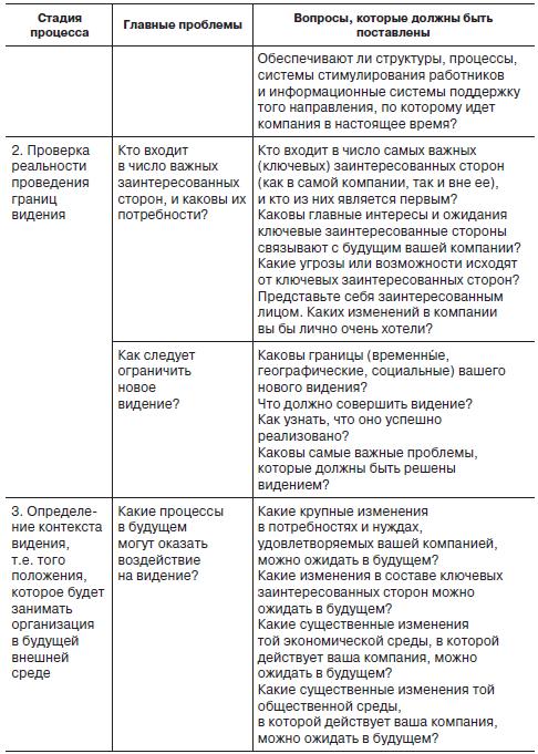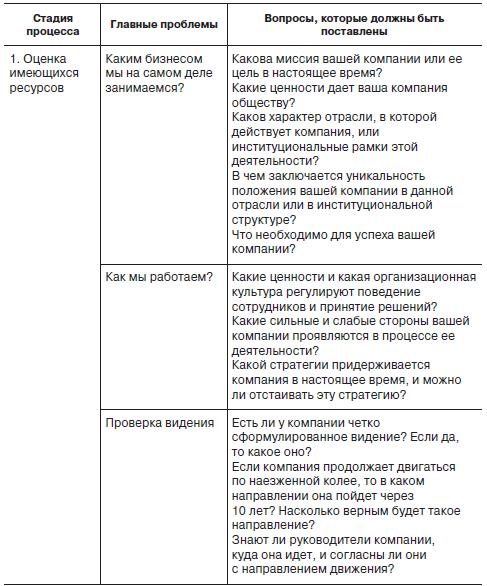 Несомненный интерес представляет четырех-стадийный процесс, предлагаемый Б. Нанусом [15], который состоит из ряда вопросов, отвечая на которые можно построить «мечту» своей организации (табл. 1.3). Он советует начать с оценки имеющихся ресурсов, т. е. с постановки следующих вопросов: