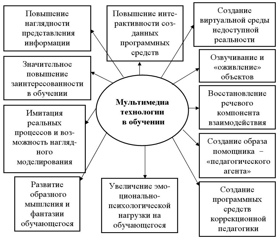 Системы мультимедиа рассматриваются как новый вид технических средств обучения, интегрирующий разные виды информации – звуковую, визуальную, и обеспечивающий интерактивное взаимодействие с обучаемым. Интересные возможности мультимедиа технологий используются при создании электронных учебных пособий и других материалов обучающего характера. Активное применение мультимедиа технологии открывает перспективное направление развития современных компьютерных технологий обучения.