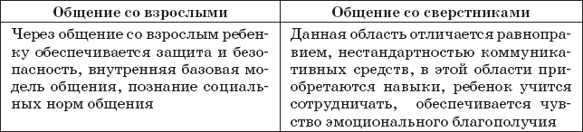 Значение и особенности развития общения со взрослыми и со сверстниками качественно отличаются (табл. 15).