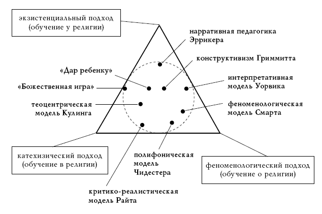 К сожалению, типологии М. Гриммита и Дж. Ипгрейв охватывают лишь европейский опыт. Одной из актуальных задач сравнительного педагогического исследования остается разработка типологии РО, учитывающей мировое разнообразие моделей. Несомненным свидетельством того, что географическое расширение может привести к существенному обогащению спектра методических возможностей РО, выступает упомянутая методика креативного РО «Божественная игра», разработанная американским педагогом Дж. Берриманом[50], или полифоническая методика изучения религиозных культур, разработанная под руководством Д. Чидестера в университете Кейптауна в рамках проекта «Педагогика сопричастности»[51].