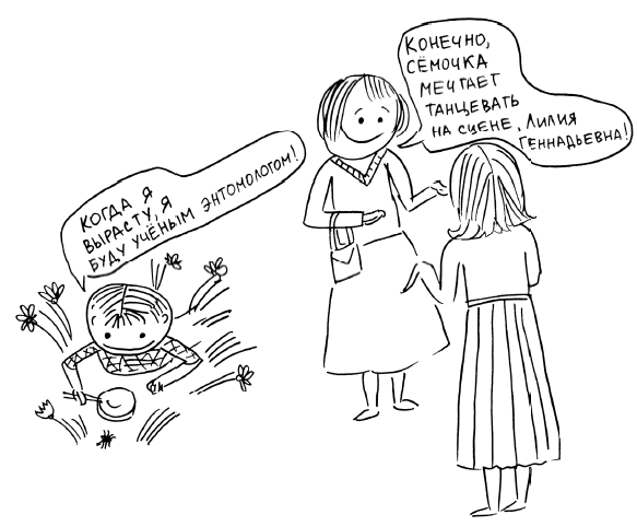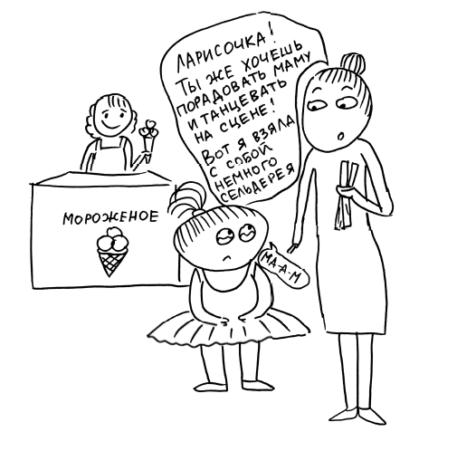 Ну и в качестве последнего аргумента я рассказала знакомой про мою воспитанницу Дашу. Дашина мама еще до рождения дочки решила, что та обязательно станет гимнасткой, и непременно чемпионкой. И тоже нашла лучшего тренера. Но тренер посмотрел на Дашу и сказал, что девочка для гимнастики полновата. Взглянув на расстроенную маму, он добавил, что девочка может еще похудеть, и пригласил прийти через полгода. Мама решила «похудеть» дочку. И мне, как воспитателю группы, в которой «надежда российской гимнастики» проводила по десять часов пять дней в неделю, было поручено следить за ее рационом. «Никаких добавок! Никакого хлеба! Не давайте ей булки и печенье на полдник!» А Даша слезно просила хлеба… И она не любила шумных подвижных игр. Медлительная, мечтательная, она любила рисовать красками восхитительные для ее возраста картины. Через полгода Даша не похудела, несмотря на строгий рацион. А я все это время целенаправленно акцентировала внимания мамы на рисунках дочери: «Посмотрите! В этом возрасте далеко не все дети рисуют сюжетные картины. Обычно лист хаотично заполняется каляками-маляками, и дети даже не разбирают, где верх, где низ. Посмотрите! Она экспериментирует с красками! Она сама дошла до того, что их можно смешивать. Даша может рисовать с утра до вечера. У нее ярко выраженные способности к рисованию. Ее надо развивать в этом направлении». Хорошо, что мама прислушалась. У Даши появился шанс стать талантливым художником, а не посредственной гимнасткой.