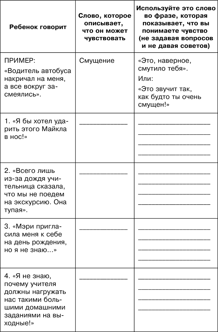 Вы заметили, сколько мыслей и усилий вам требуется, чтобы показать ребенку, что вы понимаете его чувства? Многим из нас не приходят в голову такие слова, как: