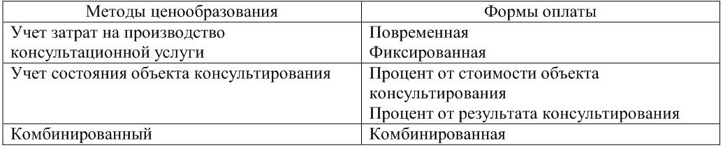 Таблица 2.9 – Методы ценообразования и формы оплаты труда консультантов