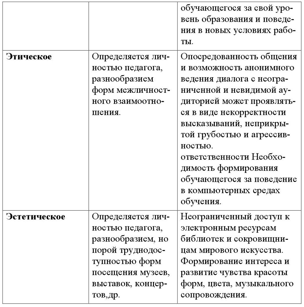 В таблице 1 приведены результаты сравнительного анализа основных характеристик традиционных и инновационных технологий обучения на базе ИКТ.