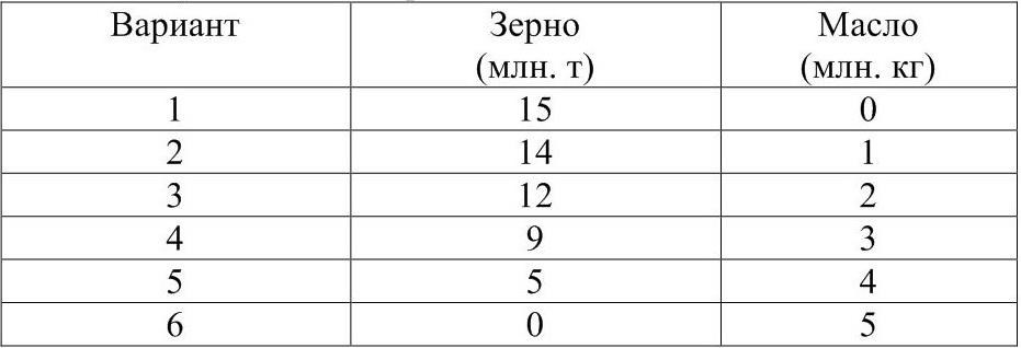 2. Все производственные ресурсы направлены на производство 15 млн. т зерна.