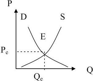 Эта точка равновесия свидетельствует о единстве экономических интересов покупателей и продавцов. Если из точки E опустить перпендикуляр на ось абсцисс, то в точке Qe определим равновесное количество. Оно показывает величину товарной массы, которая удовлетворяет пожелание покупателей и продавцов. Здесь Qd = Qs = Qe.