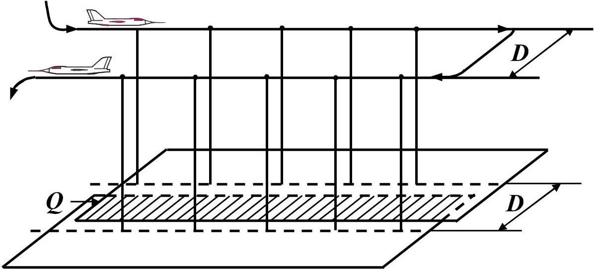 Маршрутная АФС – такое фотографирование полосы местности, при котором смежные аэрофотоснимки взаимно связаны заданным продольным перекрытием Р (рисунок 3). Причем величина его достигает 60 и более процентов, поэтому возникают и зоны тройного перекрытия, что очень важно при фотограмметрической обработке снимков. Маршрутная АФС может быть прямолинейной, ломаной и криволинейной. Площадная (многомаршрутная) АФС – фотографирование участка земной поверхности, который не захватить одним маршрутом. В этом случае прокладываются несколько параллельных между собой аэрофотосъёмочных маршрутов (рисунок 4). При этом смежные маршруты перекрываются. Называют общую часть изображений на снимках поперечным перекрытием Q.