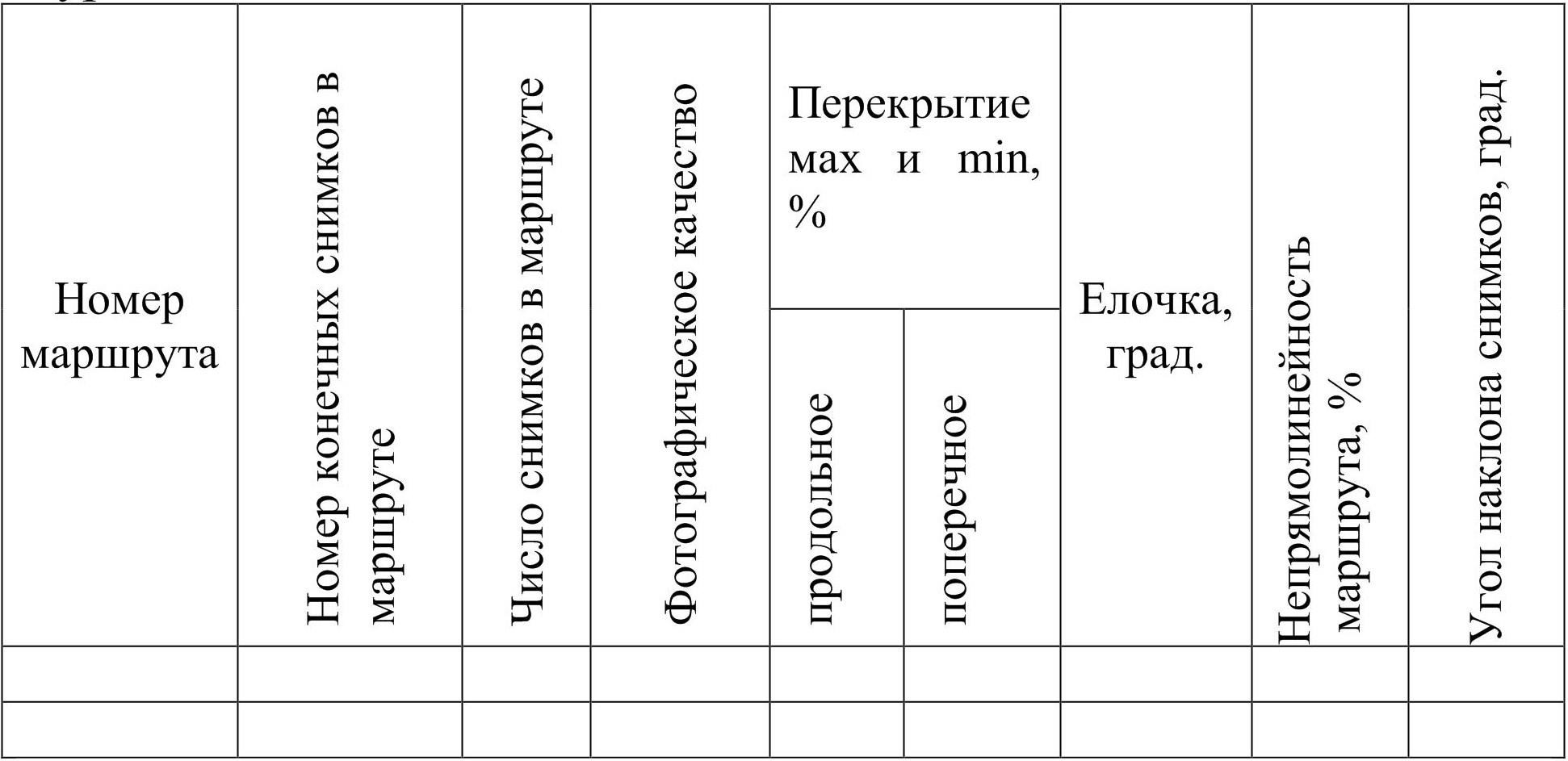 Непрямолинейность маршрута не должна превышать 2 % при высоте фотографирования Н>750 м и в масштабе съемки 1:т мельче 1:5000 и не более 3 %, если Н<750 м и 1:т крупнее 1: 5000;