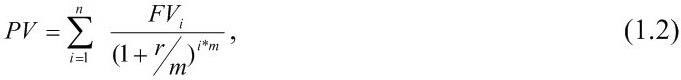 В случае если проценты начисляются несколько раз в год, то данная формула модифицируется (1.2).