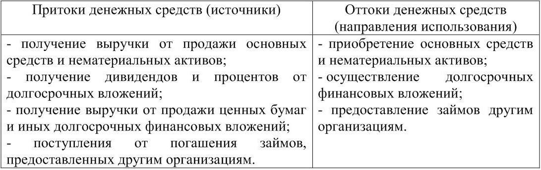 Притоки и оттоки денежных средств инвестиционной деятельности возможны по направлениям, представленным в таблице 3.
