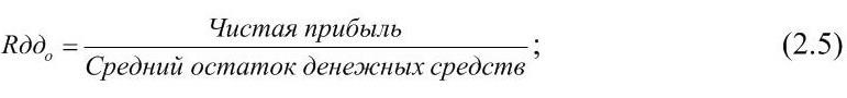 – рентабельности остатка денежных средств по формуле (2.5)