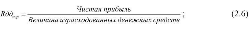 – рентабельности израсходованных денежных средств по формуле (2.6)