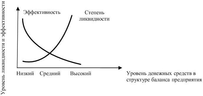 Рисунок 8 – Зависимость степени ликвидности и эффективности от размера денежных средств