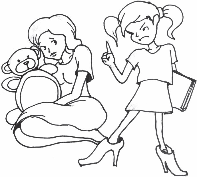 К сожалению, родители очень часто не видят своих ошибок. Иногда, когда ко мне обращаются за помощью, я меняю родителя и ребенка ролями. Говорю девочке: «Ты будь сейчас мамой, а мама побудет тобой. Поговори с ней». И вдруг дочка начинает с очень точными интонациями: «Сколько раз тебе говорить, Таня, чтобы ты убирала свою постель!!» Мама: «Неужели я так говорю?» Таня: «Однозначно, мама. Ты разве не слышишь?» И тогда до мамы доходит…