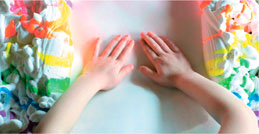 В неглубокий контейнер, наполненный пеной для бритья, добавьте немного темперы или жидкой акварели. Слегка перемешайте краски и положите сверху лист бумаги. Вдавите его в пену, вытащите и положите чистой стороной вниз на пару минут. Тыльной стороной пластикового ножа, кредитной картой или другим влагоустойчивым плоским предметом соскребите с листа бумаги излишки пены. На листе останутся мраморные узоры.