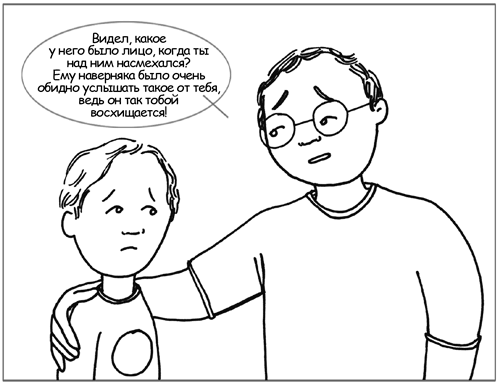Чтобы помочь в этом маленькому ребенку, достаточно указывать ему на эмоции, которые он испытывает: «Когда она отняла у тебя куклу, ты почувствовала, что жутко разозлилась. Верно?» Детям постарше лучше задавать вопросы, требующие развернутого ответа, даже если ребенка приходится «наводить» на самопостижение: «Я видела, как ты накричала на брата. Мне показалось, сначала он долго тебя допекал. Тебя это раздражало?» В идеале вы услышите в ответ нечто вроде: «Еще как! И я просто взбесилась, когда он…» Всякий раз, формулируя и обсуждая свой эмоциональный опыт, ребенок что-то узнает о самом себе и начинает лучше себя понимать. Путь к майндсайту лежит через вдумчивый диалог. А побуждая ребенка к инсайту, вы способствуете второму желаемому результату перенаправления.