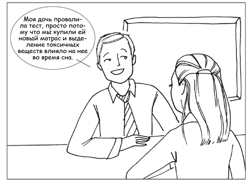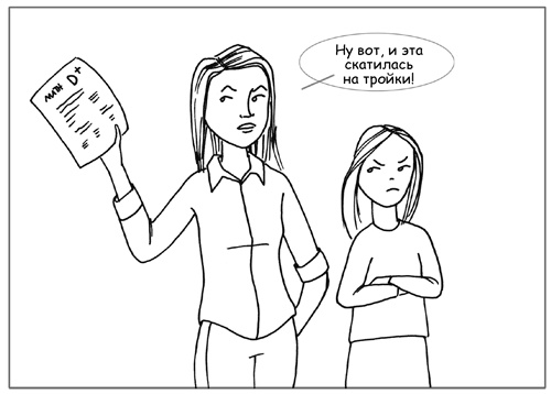 Теперь представим, что у девочки есть старший брат, девятиклассник, привыкший относиться к домашним заданиям спустя рукава, из-за чего у него теперь проблемы с алгеброй. Уже имеющийся негативный опыт может сыграть роль «темы из “Челюстей”», которая заиграет у вас в голове, когда дочь покажет оценки. «Ну вот, опять», – зазвучит рефреном внутренний голос. И вместо того чтобы повести себя как обычно – спросить дочь, что она сама об этом думает, и постараться найти наилучший для нее выход из ситуации, – вы увязнете в мыслях о проблемах сына с алгеброй и отреагируете неоправданно остро. Начнете втолковывать дочери, чем это чревато, введете запрет на все внешкольные занятия. Если «Челюсти» разойдутся не на шутку, вы перейдете к рассуждениям о том, как трудно поступить в хороший колледж, и выстроите целую цепочку ужасов: сначала пара неважных оценок по математике в пятом классе, потом проблемы в средних и старших классах, и вот уже все университеты страны отказывают вашей дочери в приеме. Вы и не заметите, как ваша обожаемая пятиклассница превратится в бездомную нищенку, толкающую тележку с пожитками к картонной коробке под мостом, где она ночует. И все это лишь потому, что она перепутала знаки «больше» и «меньше»!