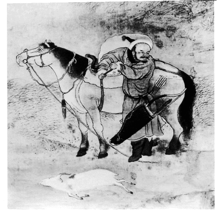 Монгольский всадник, запрягающий лошадь. Средневековый китайский рисунок