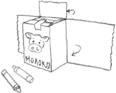 • Из использованных молочных пакетов сделайте кубики, склеив края скотчем.
