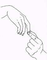 Указательный и средний пальцы обеих рук «идут» по столу.