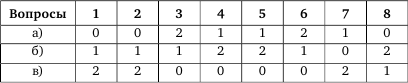 Подсчитайте в таблице, сколько баллов принесли вам ваши ответы