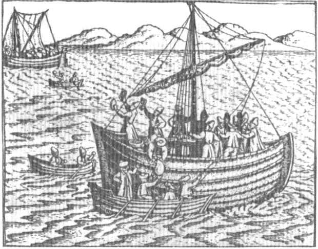Как знать, может быть именно из такой сосны были срублены изображенные на этом старинном рисунке русские лодьи, издавна бороздившие суровые северные моря.