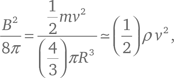 Хотя Великовский этого не сделал, мы можем приблизительно подсчитать порядок величины напряженности магнитного поля, необходимого, чтобы серьезно изменить движение кометы. Возмущающее поле может быть от планеты, такой как Земля или Марс, к которой направляется комета, или от межпланетного магнитного поля. Чтобы это поле играло существенную роль, плотность ее энергии должна быть сравнима с плотностью кинетической энергии кометы. (Мы даже не беспокоимся о том, имеет ли комета распределение зарядов и полей, которое позволит ей реагировать на наложенное поле.) Таким образом, условия следующие: