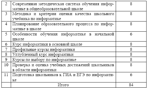 Разработка тематического планирования углубленного курса информатике в старшей школе.