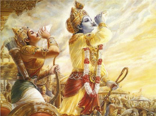 В шестую книгу «Махабхараты» включен уникальный трактат религиозно – философского характера – «Бхагавадгита» («Песнь божества»), в котором в поэтическом виде изложены догматы брахманизма – индуизма. Перед битвой скачущего на колеснице Арджуну охватывают сомнения, вправе ли он проливать кровь своих родственников. Кришна же убеждает его исполнить долг и принять участие в бою. «Бхагавадгита» стала основной и священной книги религиозно-философской секты «Сознание Кришны».