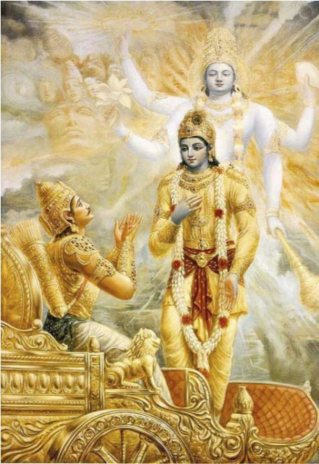 Знаменитый фрагмент «Бхагавадгиты» – на иллюстрации Снова Арджуна и Кришна