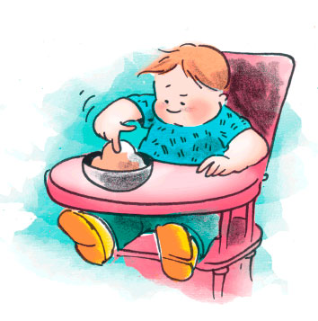 2. Посадите ребенка в высокий стульчик с надежно прикрепленным столиком.