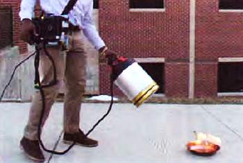 Студенты Университета Джорджа Мейсона сконструировали аппарат на собственные деньги (около 600 долларов). Он состоит из собственно огнетушителя и рюкзака с элементами питания. Сначала студенты экспериментировали с большими колонками и высокими частотами, но в итоге лучший результат показали басы: частота в 30–60 герц.