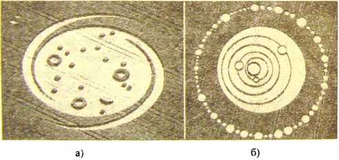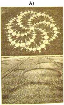 Рис. 2. Знаки на полях Великобритании, которые отождествили как изображения астрономического содержания: а) Галактика (23 июля 1994 г., Bishops Cannings, Wiltshire); б) Солнечная система (22 июня 1995 г., Longwood Warren, Hampshire)