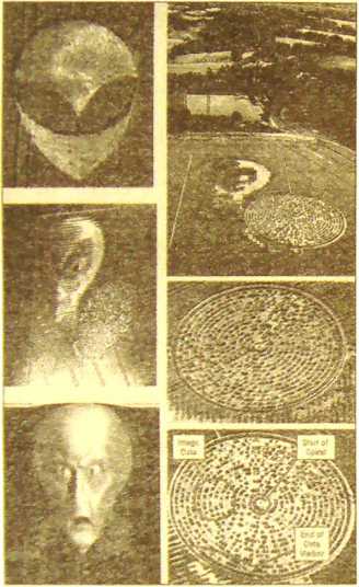 Возможно, некоторых читателей смущает переход от кругов на полях к местам посадки НЛО, уфологи чаще употребляют термин — места проявления НЛО. Наверняка найдутся сомневающиеся во взаимосвязи этих двух феноменов. Но попробуйте взглянуть на эти феномены непредвзято, провести параллели, аналогии, и окажется, что они имеют много сходных черт в своих демонстрациях Разума перед человечеством. Эти явления имеют сходные результаты по воздействию на биологические объекты, на организм человека. Наконец, наблюдатели неоднократно фиксировали проявление именно НЛО, вслед за которым обнаруживались пиктограммы на полях. Более того, термин "рисующий луч" пришел к нам именно из наблюдений уфологических событий. И, как мы видели выше, именно твердый, аномальный свет НЛО обладает характеристиками, способными оставлять на грунте следы, подобные кругам на зерновых полях.